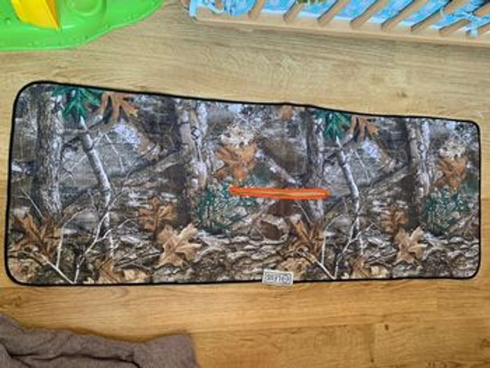 serviette de golf LEUS Realtree ECO Towel avec motif camouflage , idéale pour nettoyer clubs et balles sur le parcours. Fente centrale pour l’accrocher au sac. Très bon état. Dimensions : environ 100 × 36 cm