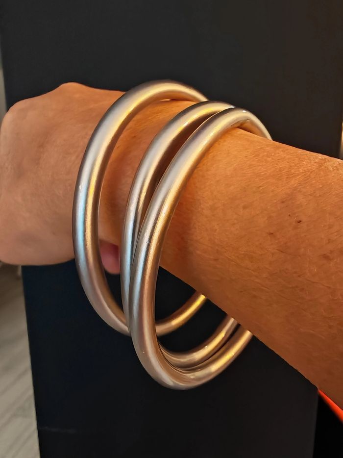 Neuf lot de 3 joncs argenté taille S (diamètre intérieur env 56-60mm) style bouddhiste: souples, légers et silencieux Existe en d autres couleurs et taille : Xs diamètre intérieur env 52-54mm M diamètre intérieur env 63-65mm