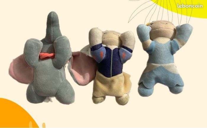 Je vends ce lot de 3 Snuglets Disney, des peluches de collection aux designs adorables et aux finitions soignées. Un ensemble parfait pour les collectionneurs de produits dérivés Disney. - Type de produit : Lot de 3 peluches Snuglets - Marque : Disney - Composition du lot : 3 Snuglets (Dumbo, Blanche-Neige, Cendrillon) - Accessoires : attache / porte-clés Très bon état N'hésitez pas à me contacter pour plus d'informations.