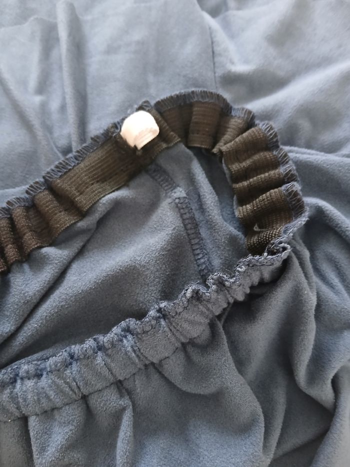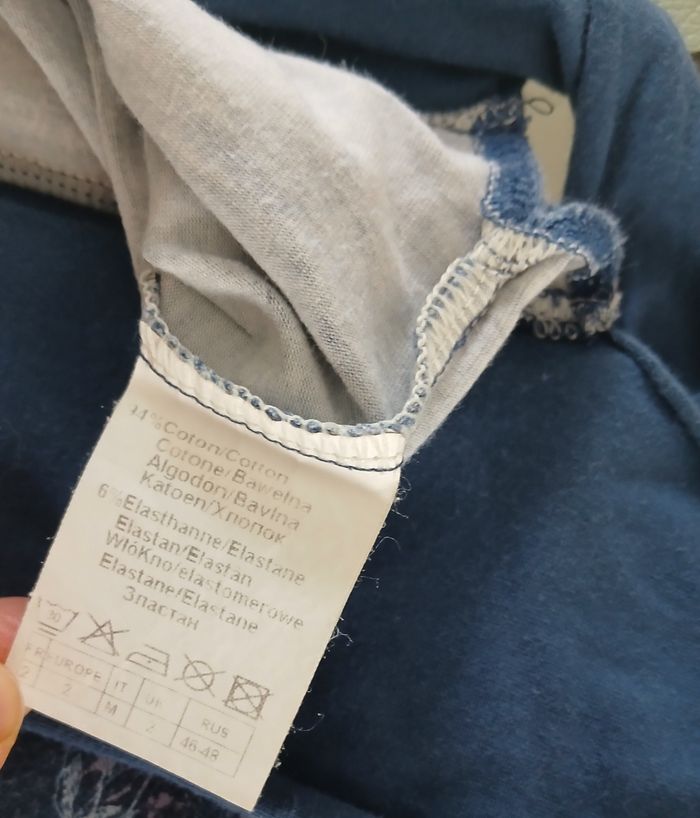 Le tee-shirt taille small bien que l’étiquette indique taille 2. La jupe effer suédine n’a plus d’étiquette. A l’intérieur ajout d’un élastique pour la régler à votre tour de taille.