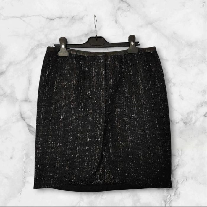 .·:*¨༺ 𝐃𝐞𝐬𝐜𝐫𝐢𝐩𝐭𝐢𝐨𝐧 ༻¨*:·. Jupe noire tweed fendue sur le devant, présence de touches dorées. Absence des étiquettes taille et matières. Taille comme un 40 en France. Bande en simili cuir en haut un peu abîmé, mais cela ne se voit pas quand c'est porté. Fermeture éclair à l'arrière au milieu. Arrive avant les genoux. Ni trous, ni tâches. .·:*¨༺ 𝐏𝐫𝐢𝐱 ༻¨*:·. J'étudie les offres raisonnables pour l'achat de plusieurs articles. .·:*¨༺ 𝐄𝐧𝐯𝐨𝐢 ༻¨*:·. L'envoi sera plus rapide, si vous choisissez Mondial Relay, car il est plus facile pour moi d'envoyer via ce réseau. .·:*¨༺ 𝐂𝐨𝐦𝐦𝐮𝐧𝐢𝐜𝐚𝐭𝐢𝐨𝐧 ༻¨*:·. N'hésitez pas à me contacter, si vous avez des questions. Je ne suis pas du genre à insister pour vendre.