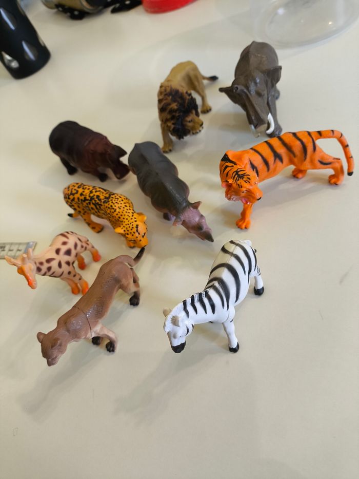 9 animaux de la jungle,avec sa boîte de rangement Utiliser quelques fois Très bon état Laver
