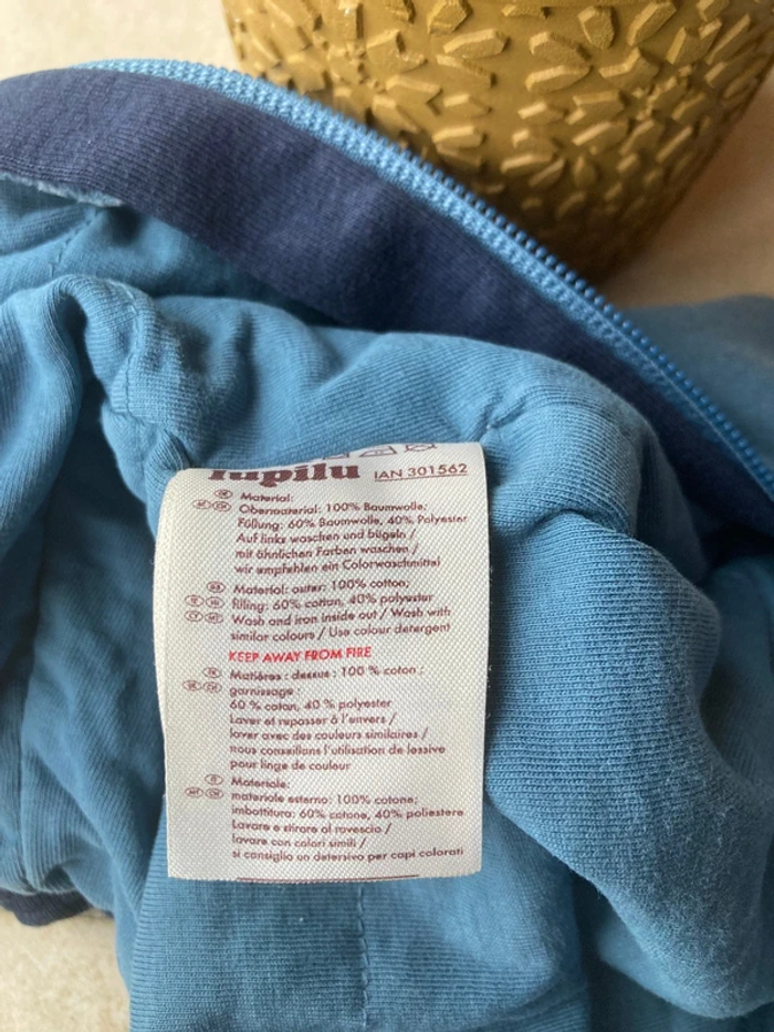 👦 Turbulette, ouverture sur le devant, couleur bleu 👦 Taille 0-6 mois 👦 Marque Lupilu 👦 Très bon état 👦 Composition coton et polyester 👦 Maison non-fumeur 👦 Réduction sur les lots et envoi rapide