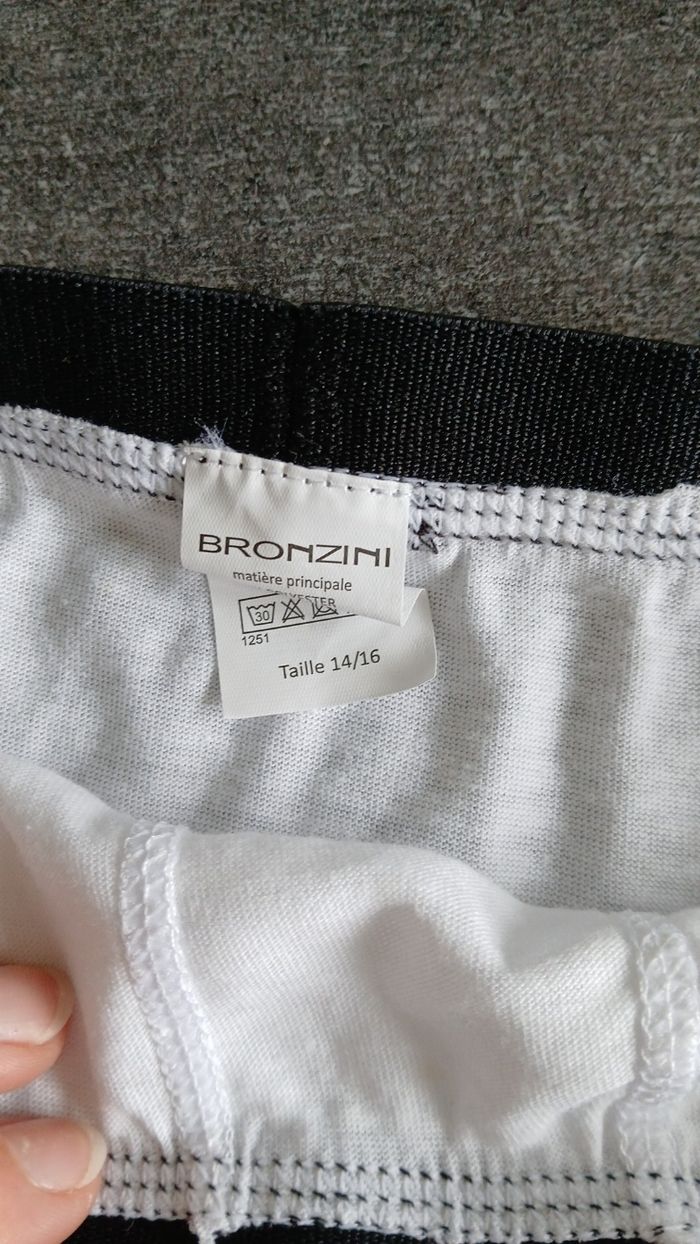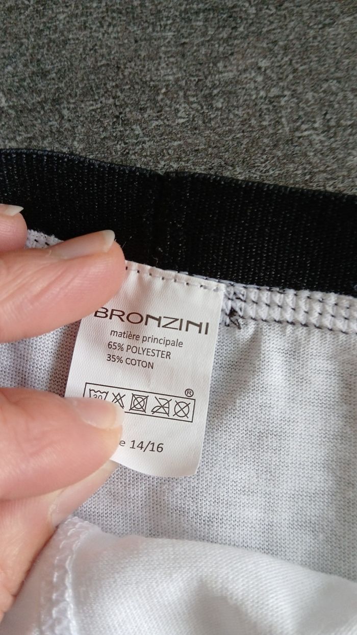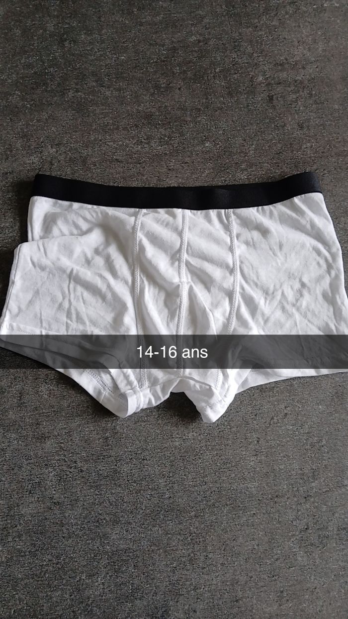 Caleçon, de marque bronzini, neuf avec étiquette. Couleur blanc avec ceinture élastique noire. 65% polyesther et 35 % coton taille 14-16 ans