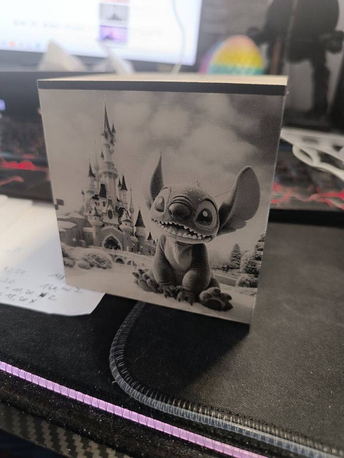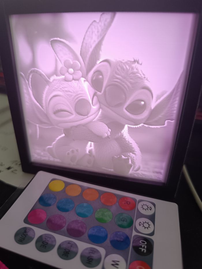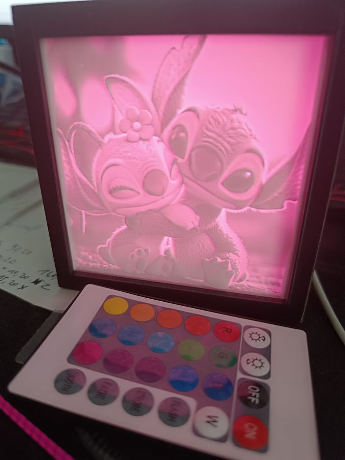 Lampe lithophane Stitch 10cm sur 10 Led couleur télécommande Gravure .
