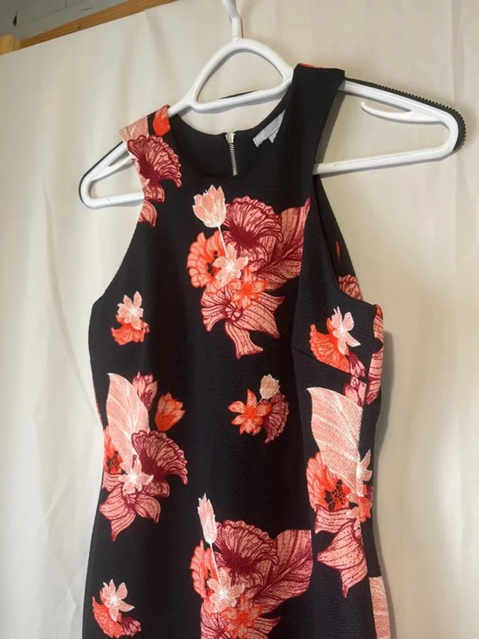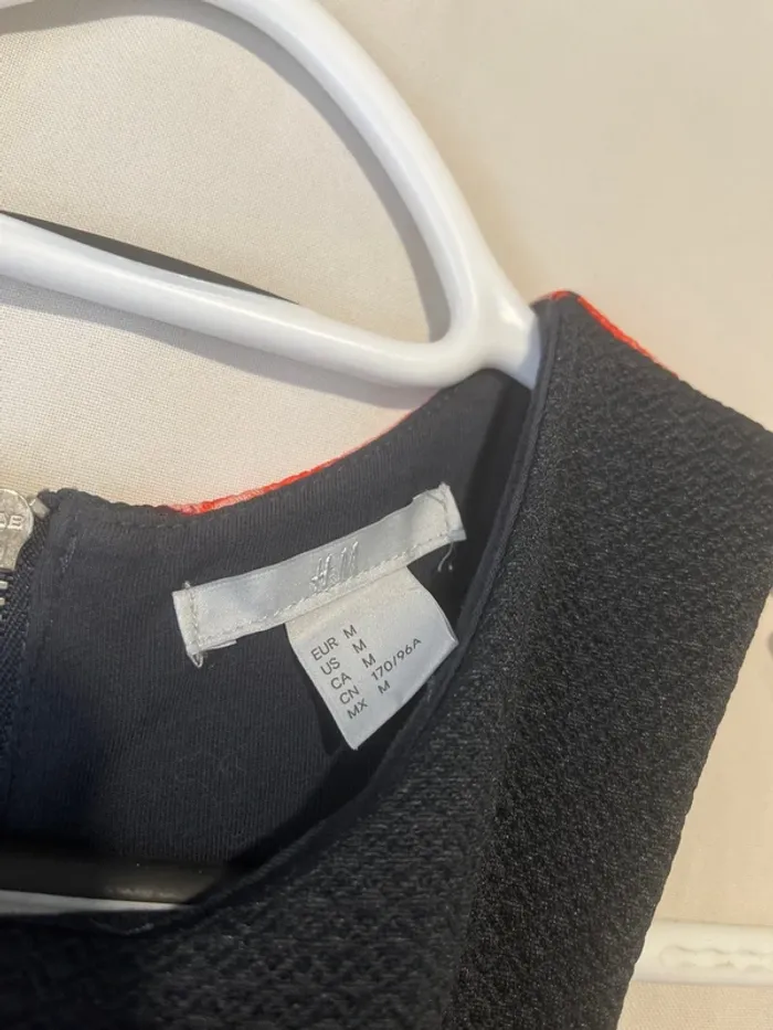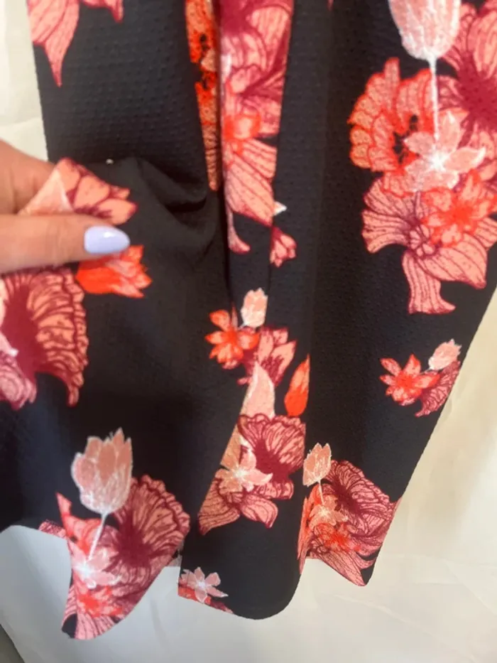 Robe noire imprimée fleurs Rose pêche Taille M H&M Fermeture dans le dos Longueur 109 cm