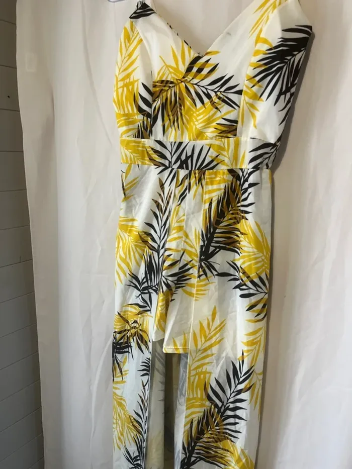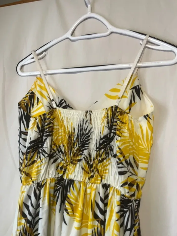 Combi short avec jupe longue Bretelles réglables Crème imprimer feuille jaune Taille 36/38 Aisselle à aisselle 40 cm Taille 40 cm