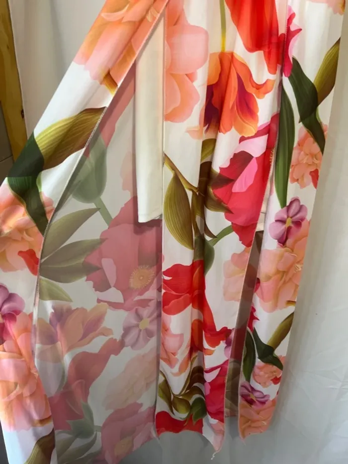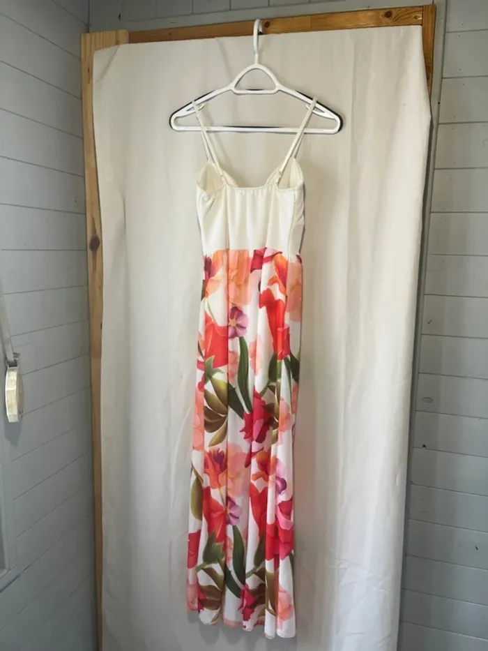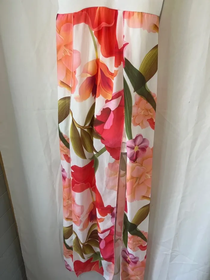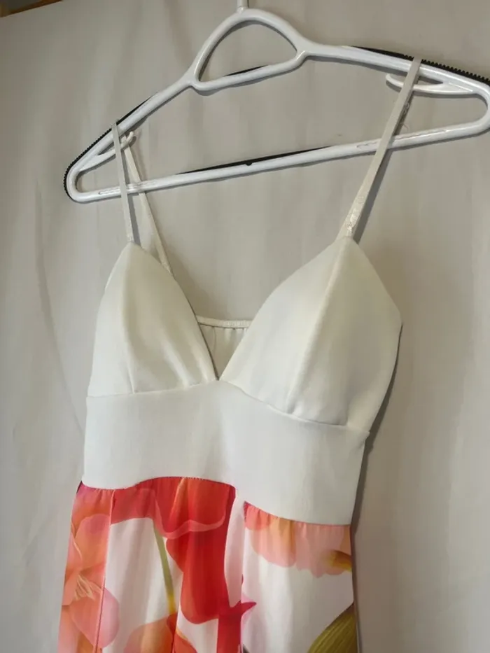 Robe longue Avec short intégré Bretelles réglables Haut blanc et jupe imprimée fleurs Coque à la poitrine Aisselle à aisselle 37 cm
