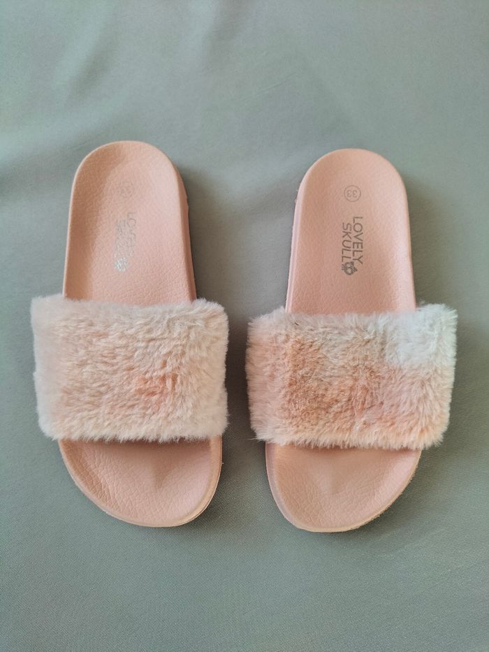 Claquettes rose clair fourrure - Pointure 33 - Lovely skull - Très bon état  - photo numéro 1