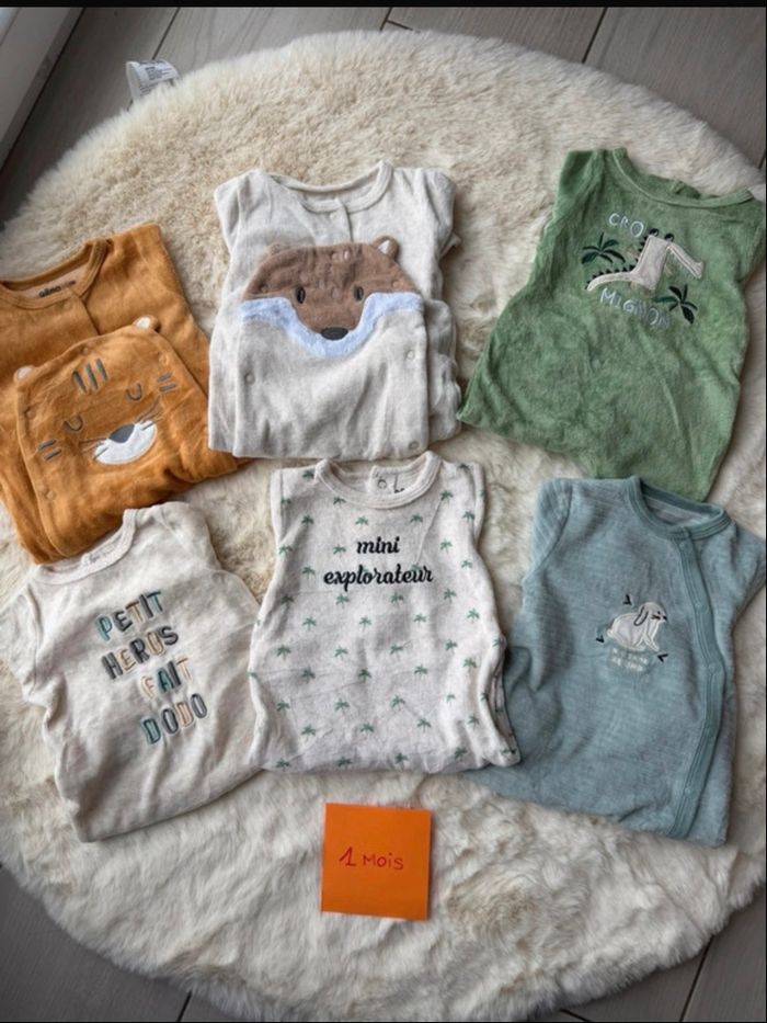 Lots pyjamas velours 5 Gémo 1 Kiabi Taille 1 mois Très bon état