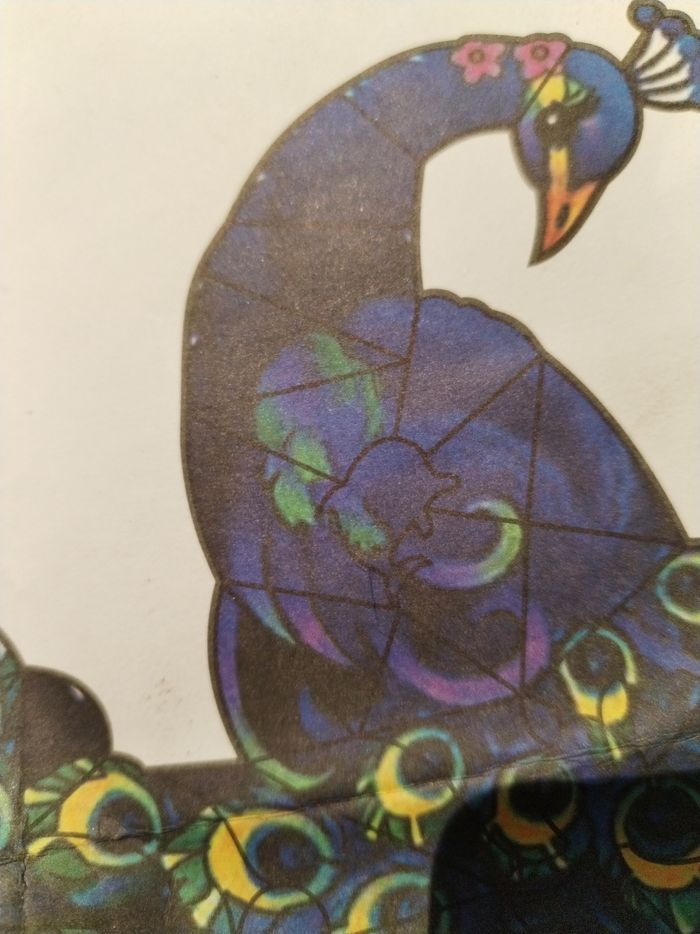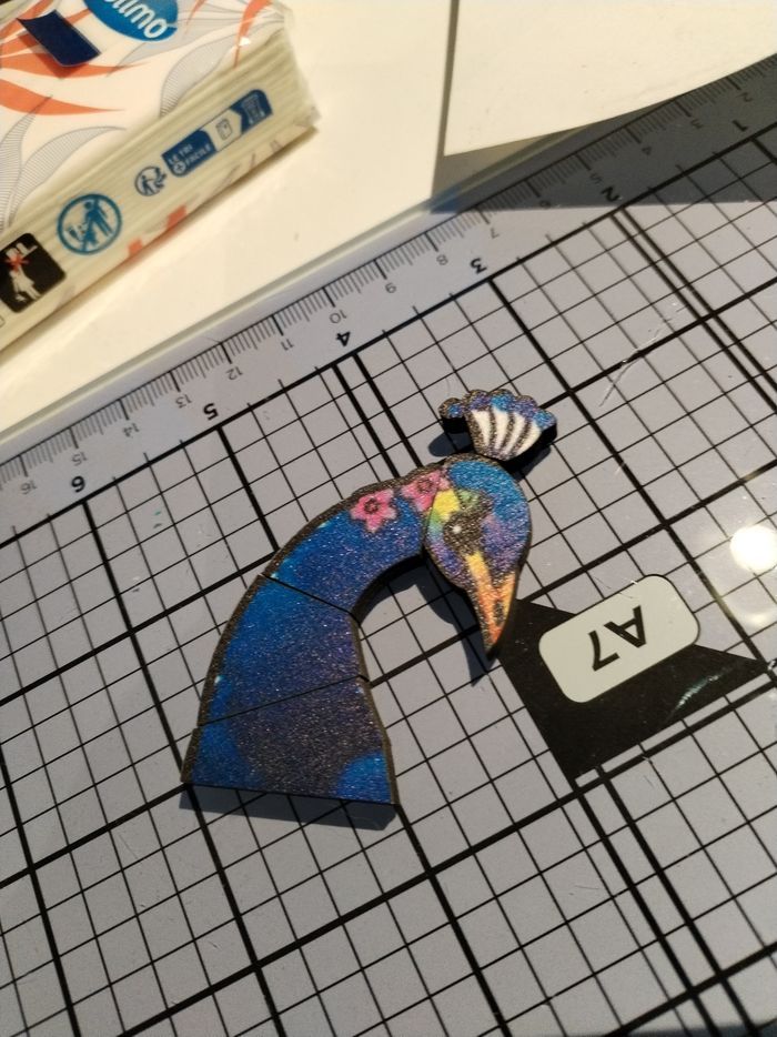Puzzle en bois paon. Des pièces en formes d'animaux permettent de se repérer et partir de ces formes pour réaliser ce puzzle. Les pièces ne s'accrochent pas entre elles comme pour les puzzle classiques. À partir de 14 ans. Puzzle complet. Contient les 80 pièces en bois.