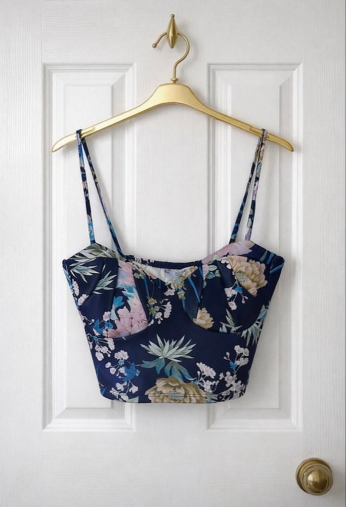 Crop top Pull and Bear fleuri vert  - Haut court Taille S