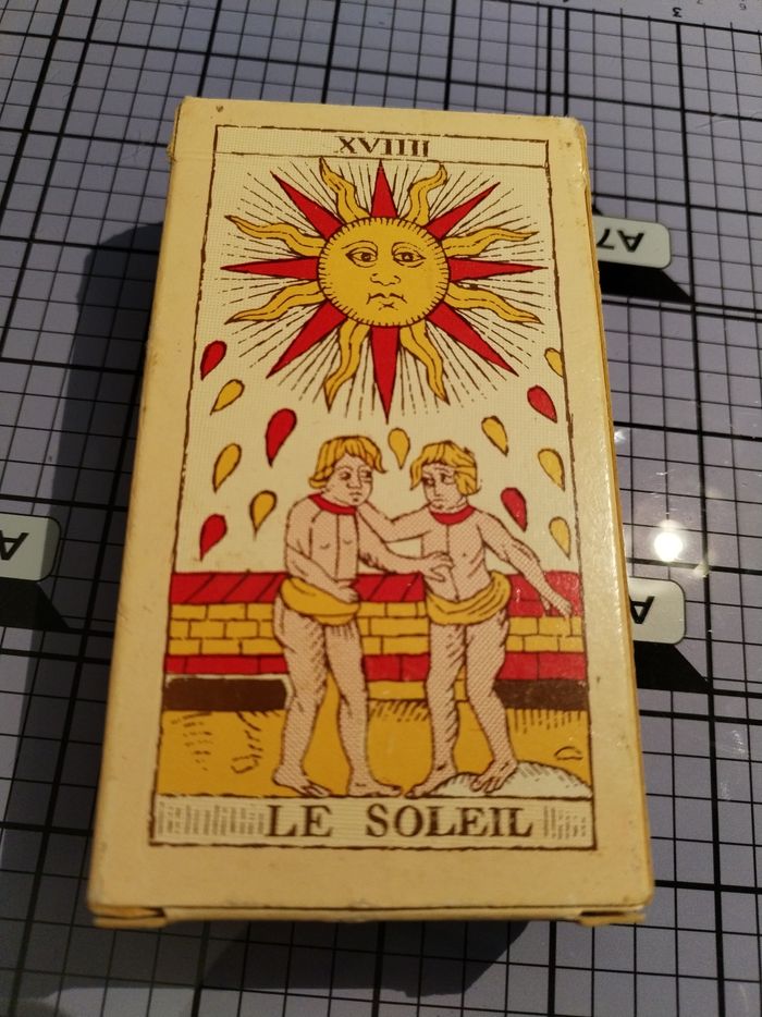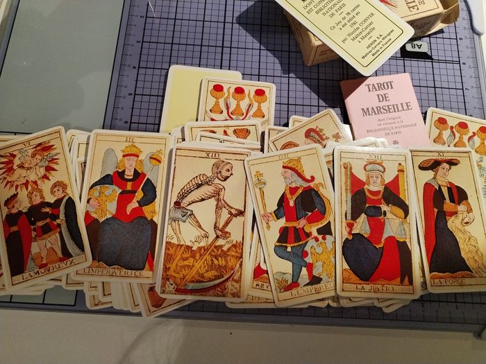 Reproduction de l'authentique Tarot de Marseille dont l'original est conservé à la bibliothèque nationale de Paris. 78 cartes. Jeu complet. Avec notice explicative pour mieux analyser le tirage des cartes.