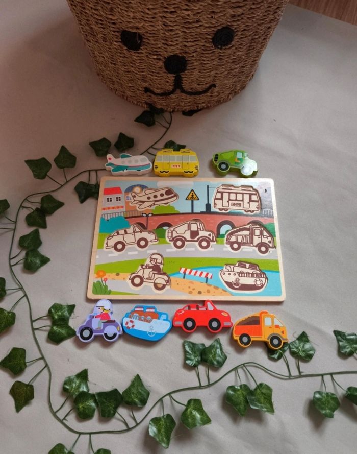 ❌️MAISON NON FUMEUR ! ❌️JOUET DE 1ER MAIN Puzzle en bois en bon état, quelques traces d'usure et tâche a l'arrière du plateau