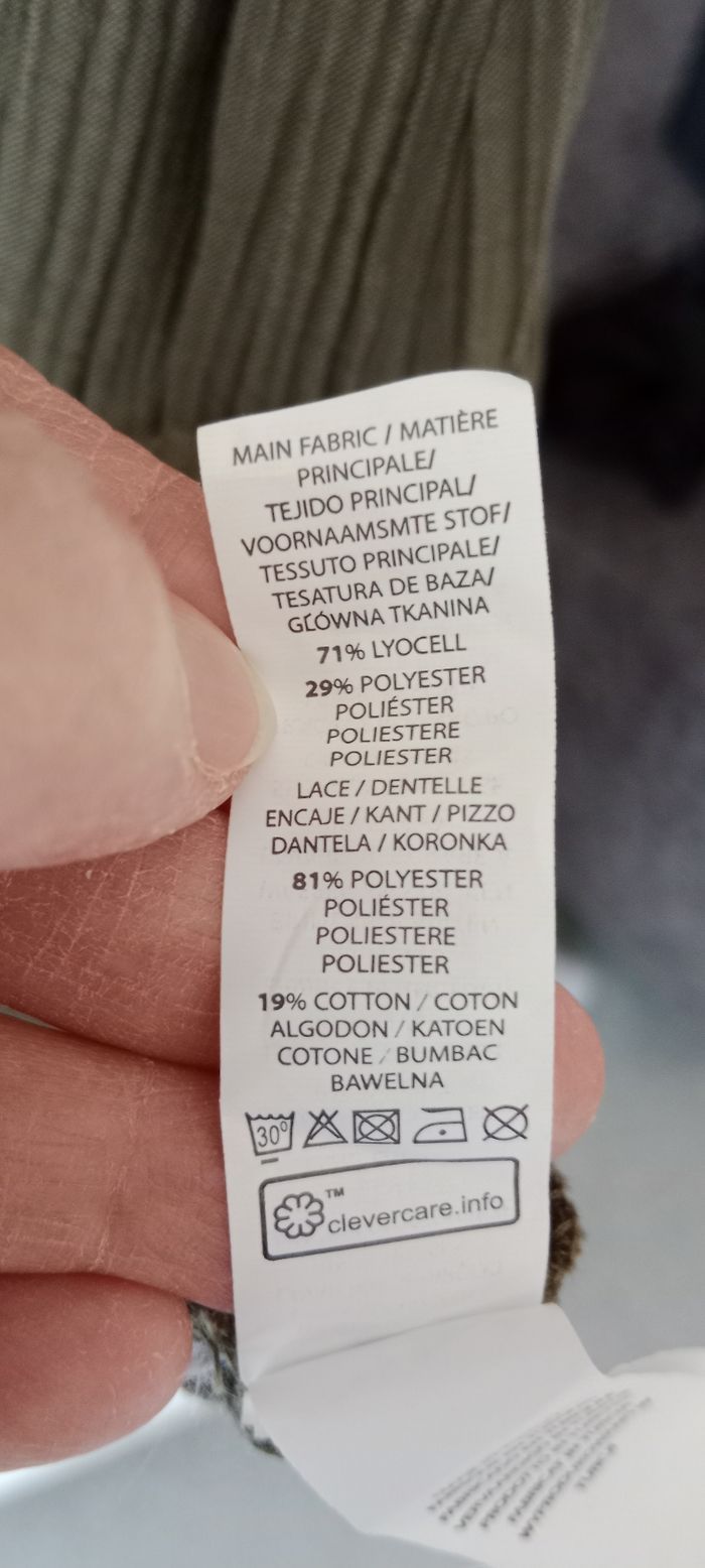 Robe été. Couleur kaki. Taille M. Composition de la Robe 71% de lyocell et 29% de polyester. Composition de la dentelle 81% de polyester et 19% de coton.