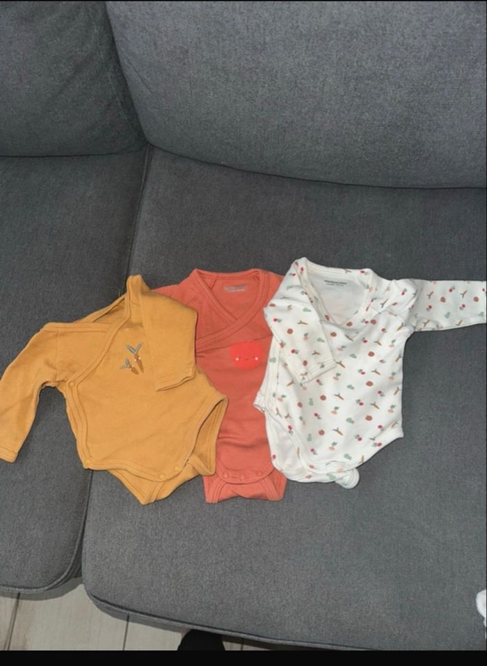 Lot 3 bodies manches longues 1 mois - Kiabi - comme neufs