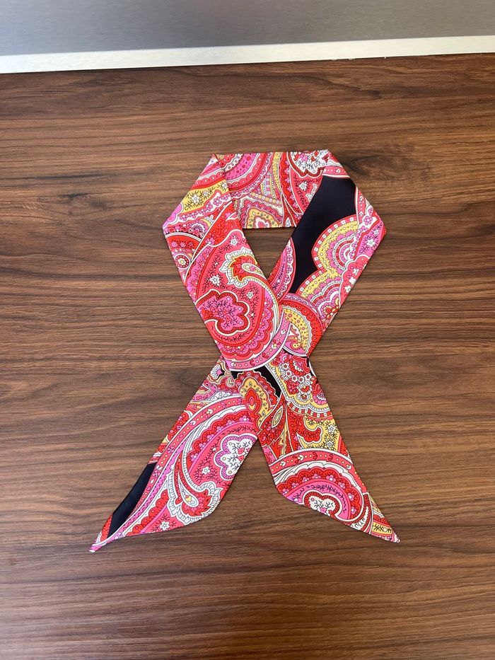 Foulard de type twilly réalisé en viscose, idéal à porter autour du cou, en bandeau dans les cheveux, en accessoire de sac à main ou encore en bracelet. Ce foulard vous permet d’ajouter un côté élégant à votre tenu tout en ajoutant de la couleur. Realisé en viscose il permet un ressenti doux contre la peau tout en apportant une brillance. Dimensions : 85x 7 cm