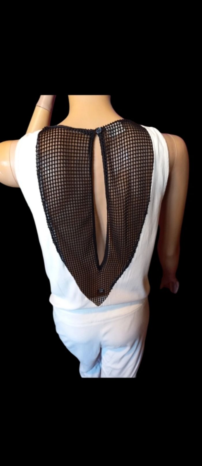 Combinaison blanche très originale et sexy de marque Bel Air et de taille 36,(manequin en photo de taille 38/40), décolleté en V et en filet et dos également en filet, très joli , très bon état