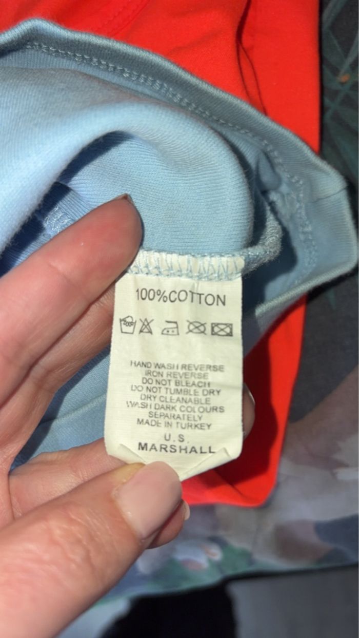 Je vends ce t-shirt U.S. Marshall acheté il y a quelque temps. C'est un modèle style "Athletic Dept" avec des détails en relief et des paillettes sur le logo. * Pourquoi je m'en sépare : Je fais un grand tri dans mon dressing car il est devenu trop petit pour moi. * État : Porté une seule fois, il est en excellent état (proche du neuf). Les couleurs sont encore très vives. Je trouve que les couleurs sont plus semblable à partir de la deuxième photo. * Matière : 100% Coton, très confortable. * Coupe/Taille : C'est une taille XS. Il a une coupe ajustée qui met bien en valeur la silhouette.