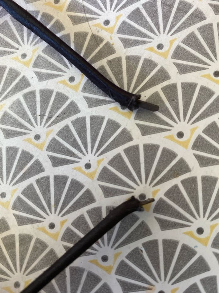 Très jolie, certaines roses, pale, avec sur le devant trois nœud papillon en strasse, tout blanc, le contour tout noir à l’arrière rien le bas du serre-tête est un peu abîmé mais rien de méchant.