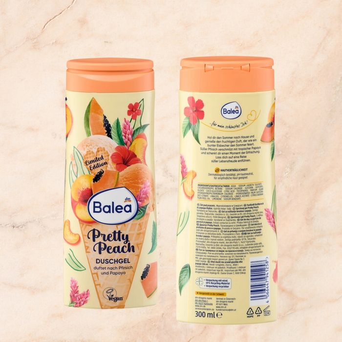 2 x Gels Douche Balea DM Pretty Peach - Pêche & Papaya 300ml - Édition limitée ☘️ Vegan & Naturel 📦 Envoi uniquement par Mondial Relay