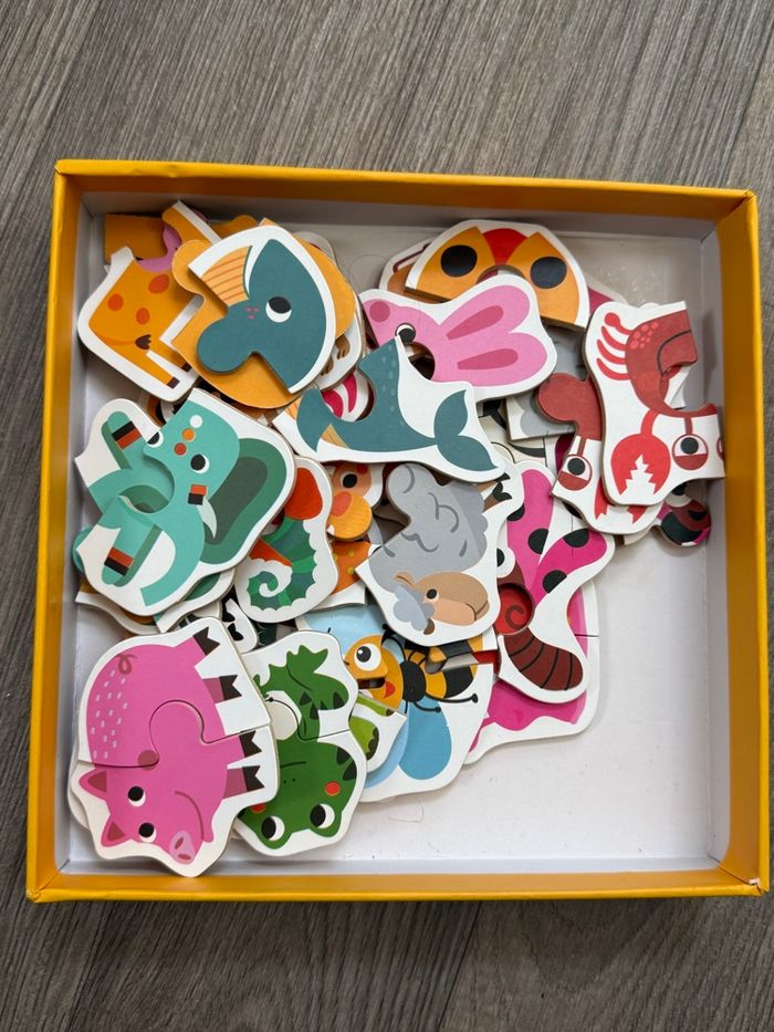 Puzzle magnétique avec décor de ville (routes, bâtiments, véhicules)
