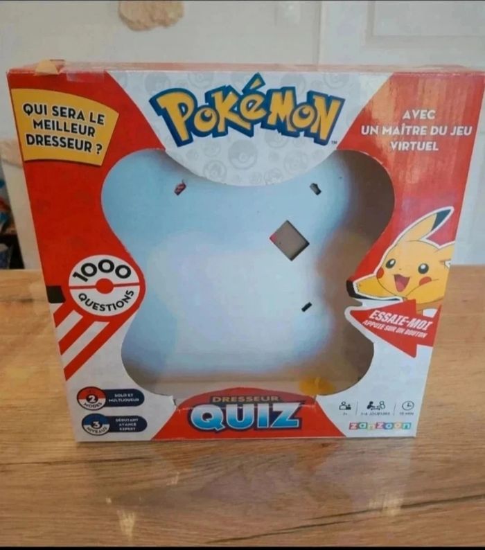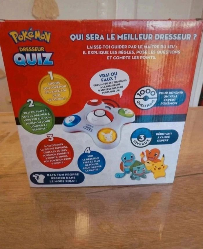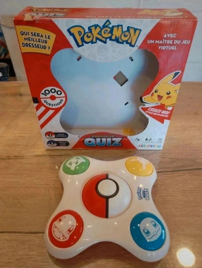 1000 questions pour tester tes connaissances Pokémon ! Sois le premier à buzzer, donne les bonnes réponses et remporte la partie ! 3 modes de jeu. De 1 à 4 joueurs. fonctionne a piles. non fournis essayé 1 fois. etat comme neuf envoit avec mondiale relais ou chronopost
