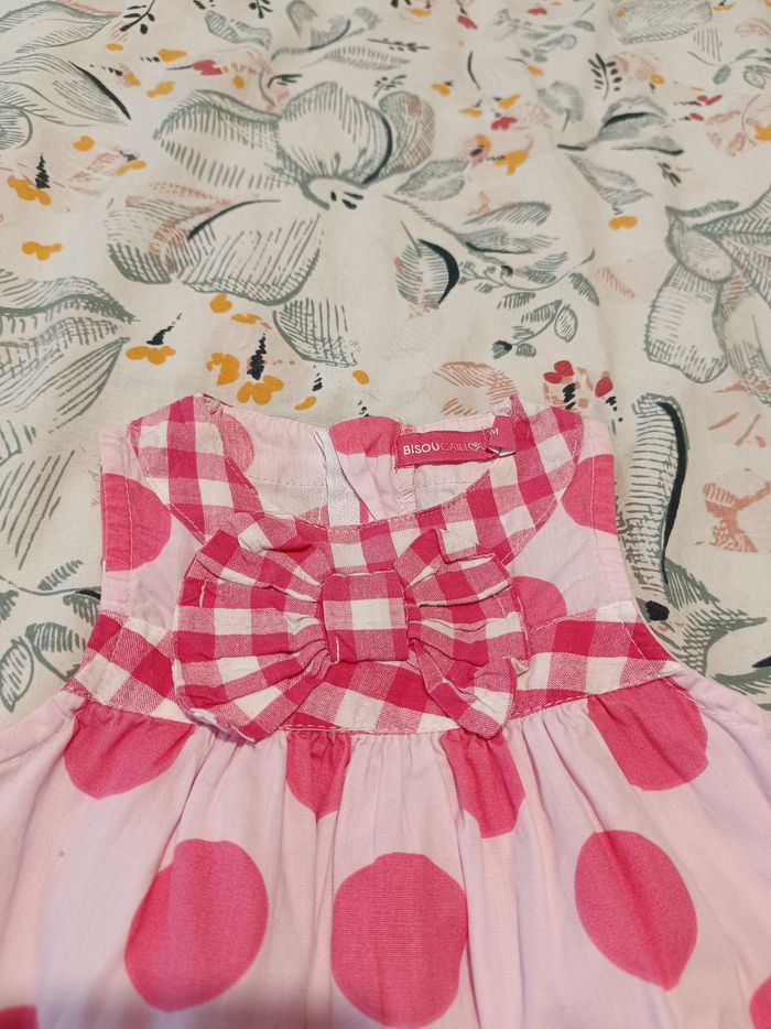 Bonjour, Je vends cette robe bébé fille en taille 0/1 mois (56 cm) de la marque Bisoucaillou