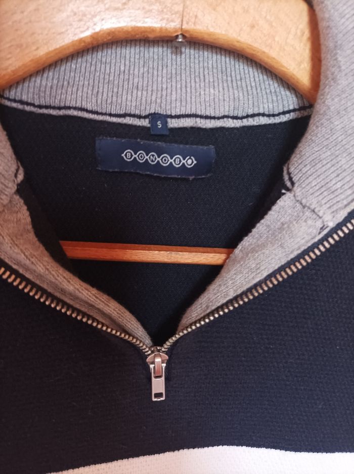 Pull Bonobo col montant fermeture éclair; vendu pour changement de taille . Ce n'est pas un col roulé; je mets ras de cou car col montant n existe pas dans la liste