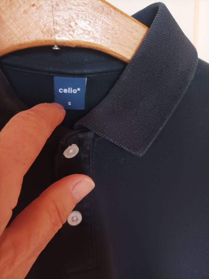 Polo noir Celio, manches longues; vendu pour changement de Taille