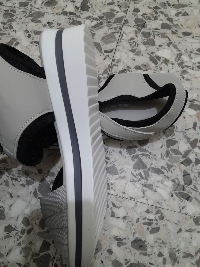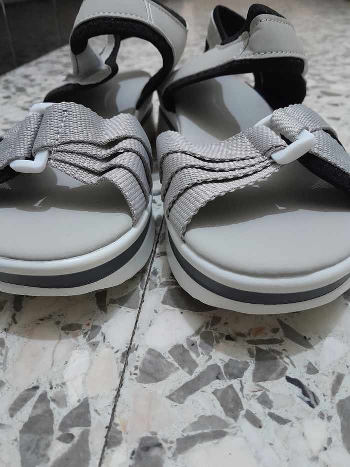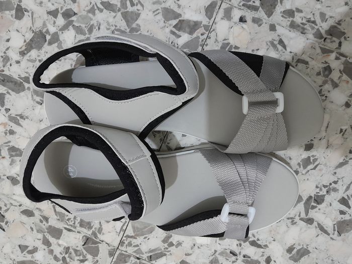 Vends cette paire de sandales pour femme, gris. Parfaites pour l'été, elles allient confort et style décontracté. - Fermeture : Scratch