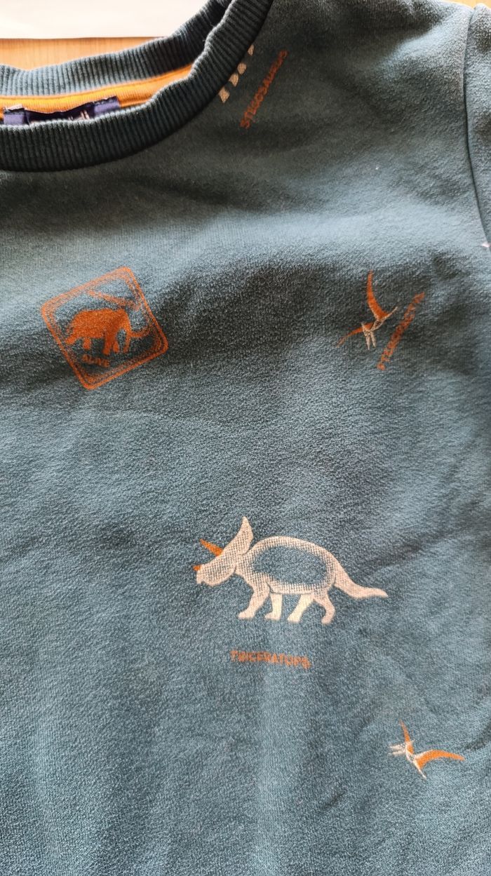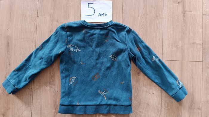 Sweat vert foncé, motifs dinosaures. Taille 5 ans. Okaïdi. 🖐 Remise en main propre à #Sarreguemines (57) ⛔ les personnes qui négocient un prix sans se présenter n'auront pas de réponse de ma part. Je ne fais pas d'article gratuit.