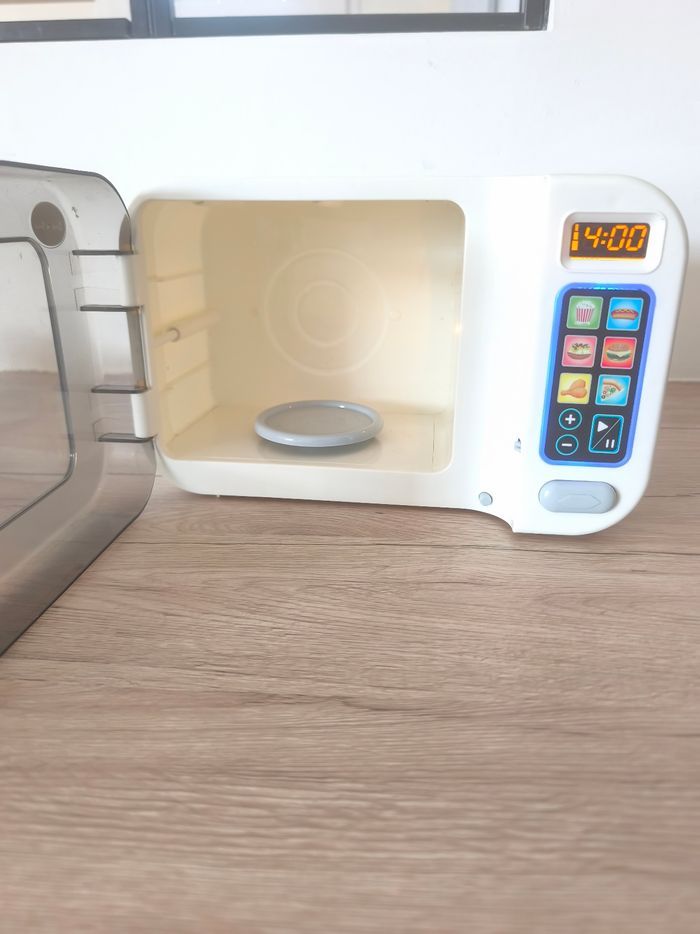Son et lumière a l'ouverture de la porte et lorsqu'on appui sur les boutons. Il y a 6 boutons de temps de cuisson certains ne font plus de son lorsqu'on appui dessus.