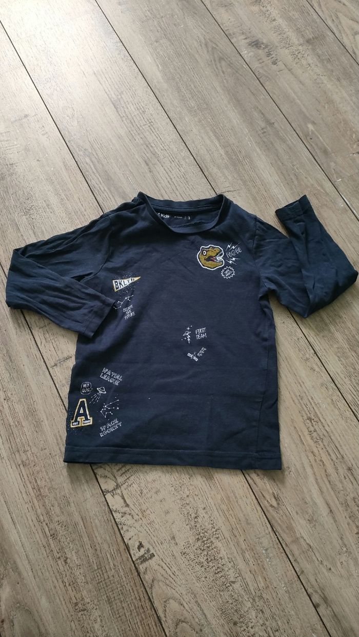 Tee-shirt manches longues taille 3 and. Motif dinosaure.