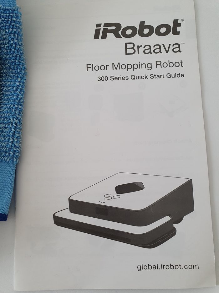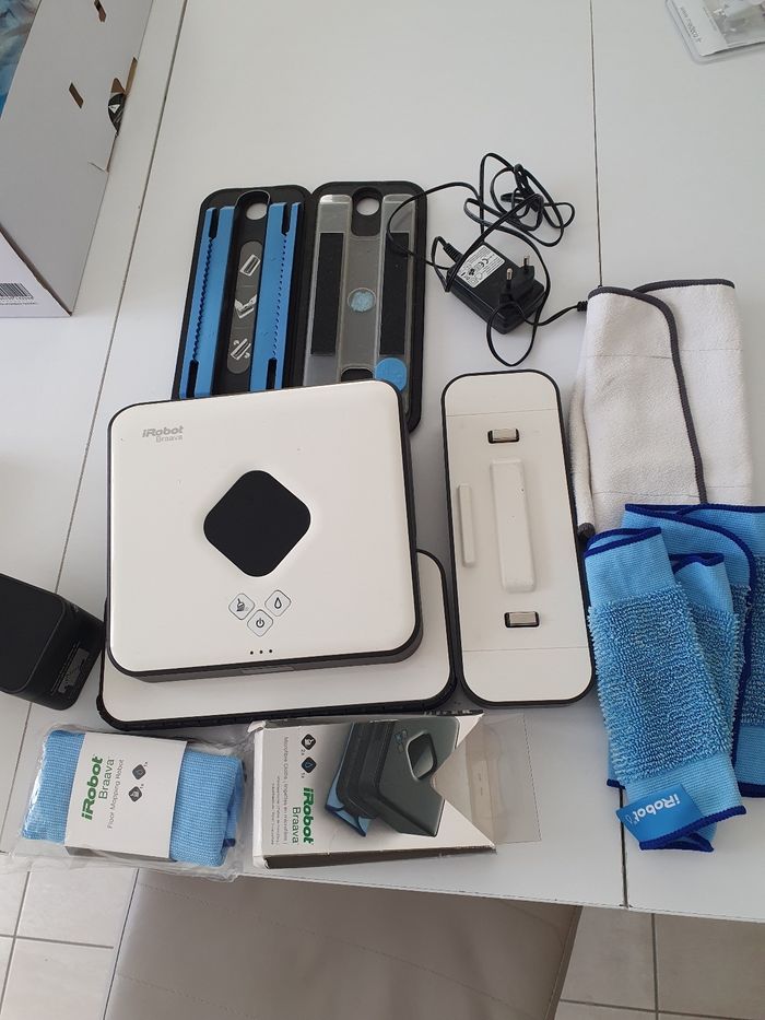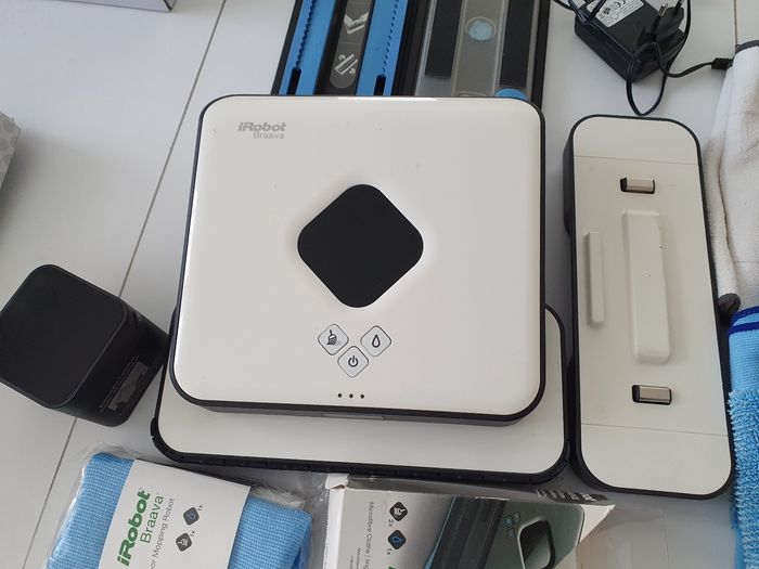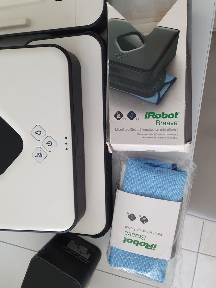 Je vends mon robot serpillière iRobot Braava 300 Series, parfait pour nettoyer vos sols sans effort. Idéal pour maintenir votre maison propre au quotidien. - Accessoires inclus : Station de charge, chargeur, lingettes microfibre (bleues), guide de démarrage rapide, réservoir d'eau Très bon état