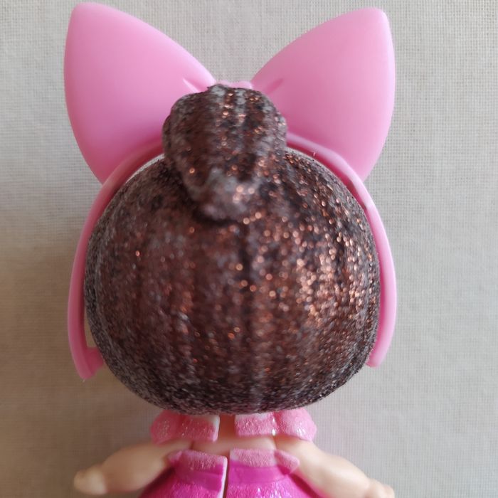 Poupée L.O.L. surprise Glitter série 1 Fancy Les paillettes au niveau des cheveux sont ternes (ma fille a joué avec dans l'eau et les paillettes captent le calcaire+++) La gourde est manquante et le plastique du serre tête est un peu abîmé