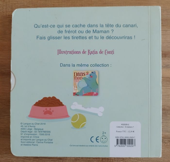 Je vends l'album jeunesse "Dans ma tête" de Katia de Conti, un livre pour enfant avec des illustrations colorées et des tirettes interactives. - Titre : Dans ma tête - Auteur : Katia de Conti - Genre : Livre pour enfant & adolescent - Éditeur : Langue au Chat - Format : Cartonné avec tirettes - Langue : Français - ISBN : 978-2-8083-0298-7 - Collection : Langue au Chat Très bon état N'hésitez pas à me contacter pour plus d'informations ou pour convenir d'une visite.
