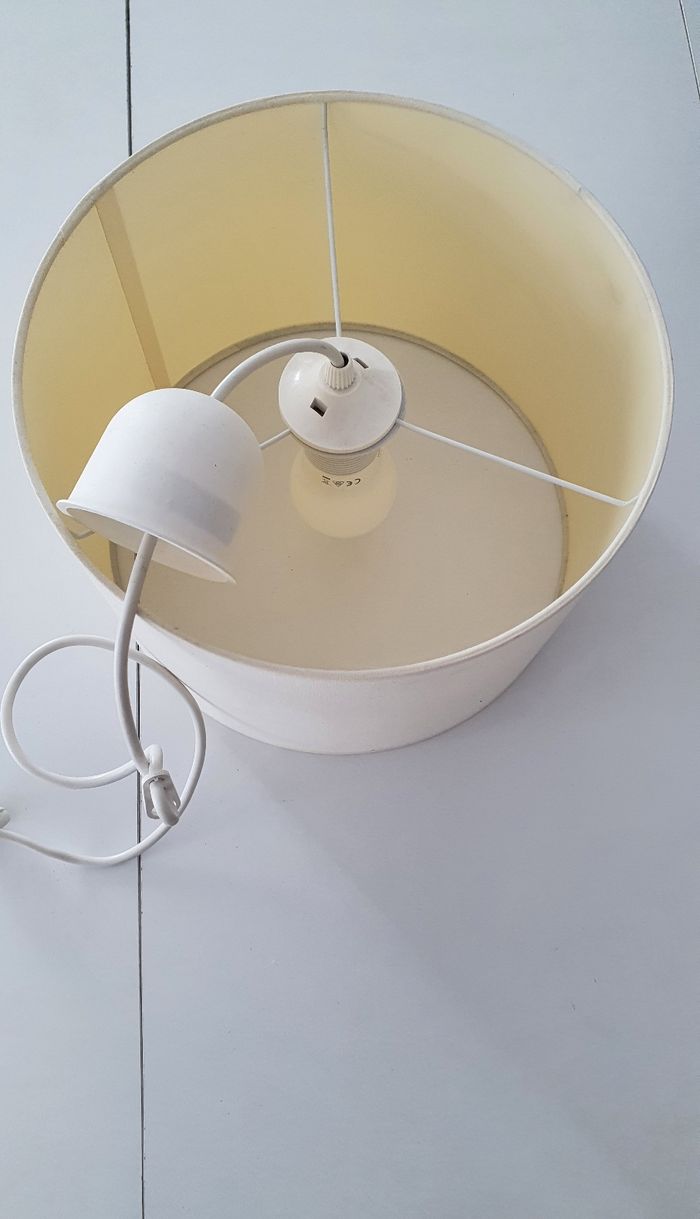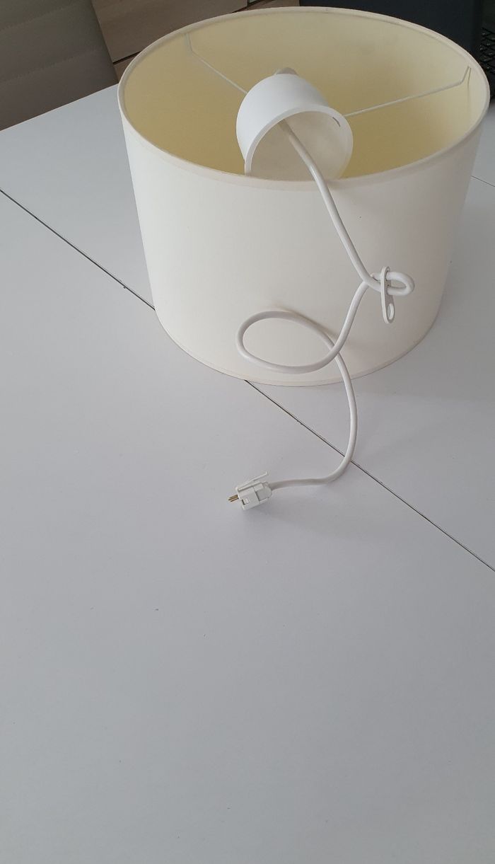 Je vends cet abat-jour blanc cassé en tissu, parfait pour apporter une touche de luminosité douce à votre intérieur.
