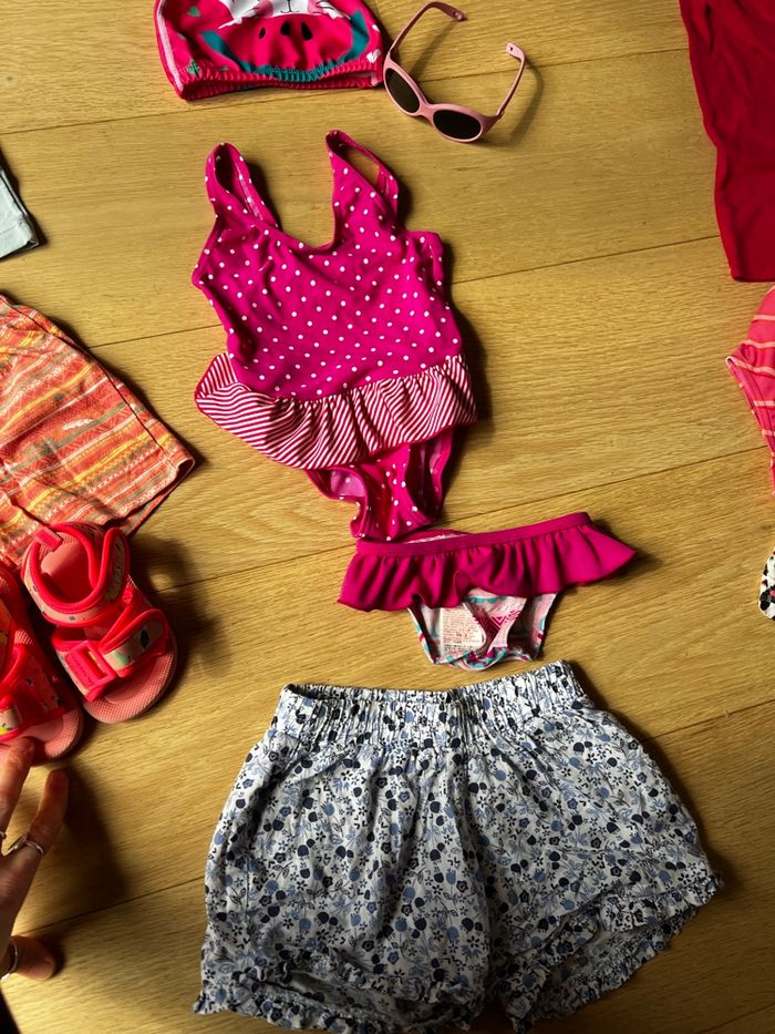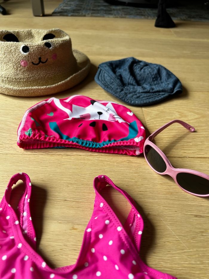 Lot nuit et plage / piscine : maillot, chapeau, pyjama fille 2/3 ans