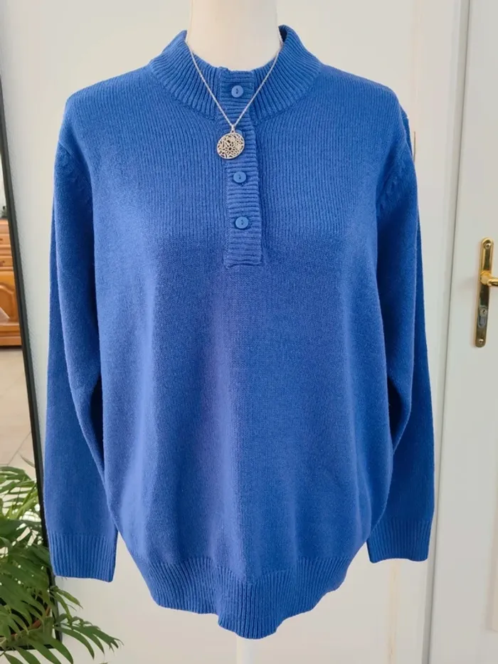 Pull col montant à patte boutonnée. Porté une fois, lavé, comme neuf. Dimension à plat, aisselle à aisselle : 58 cm Hauteur : 61,5 cm Épaule à épaule : 41 cm Maille jersey souple (acrylique), confortable (extensible), entretien facile. Couleur : bleu-violet 💠💠💠💠💠💠💠💠💠💠💠💠💠 🔸N'hésitez pas à faire des lots 🔸Besoin d'informations supplémentaires ? Envoyez-moi un petit message (je répond rapidement) ⚠️ envoi uniquement par Mondial Relay - retour non accepté 💠💠💠💠💠💠💠💠💠💠💠💠💠
