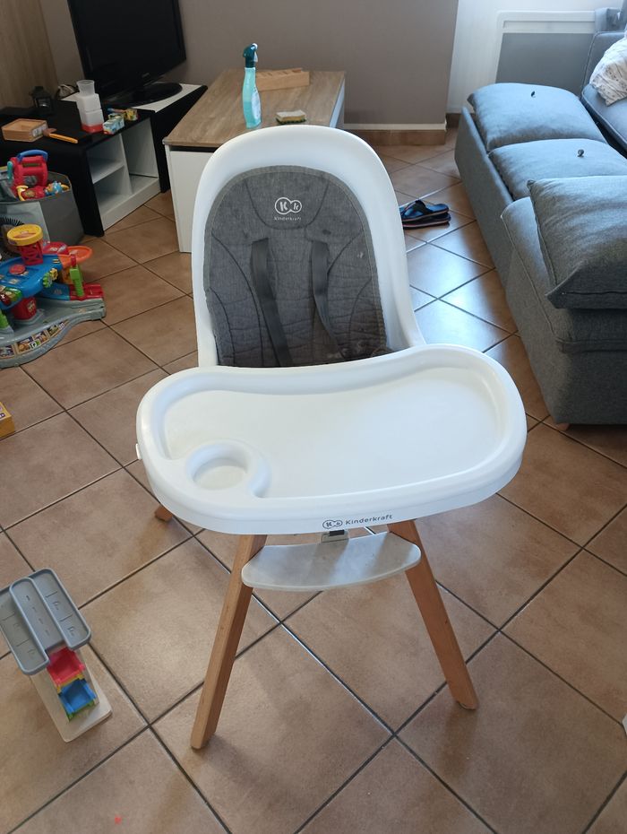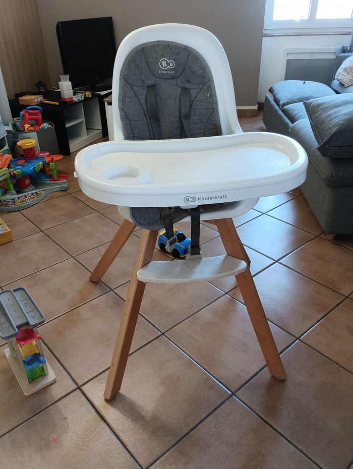 Chaise haute basique, style scandinave. En bon état. Housse détachable et lavable à la machine à laver