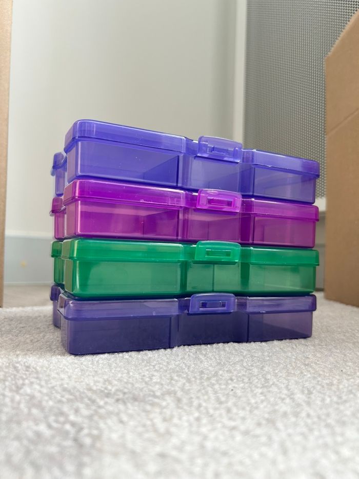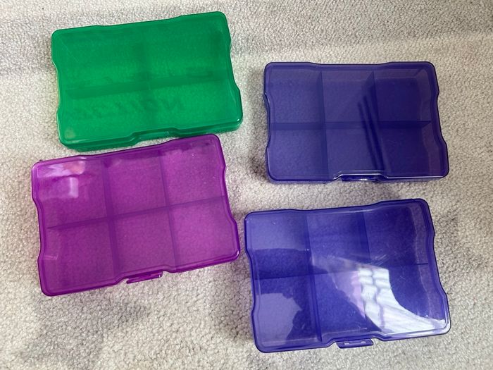 Boîtes colorées à compartiments neuves.