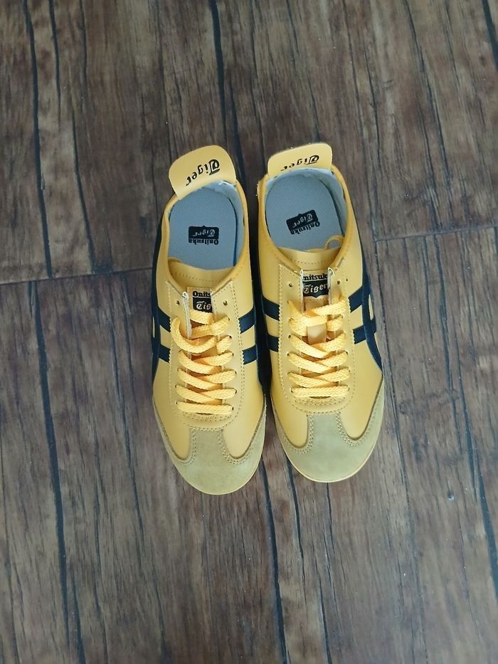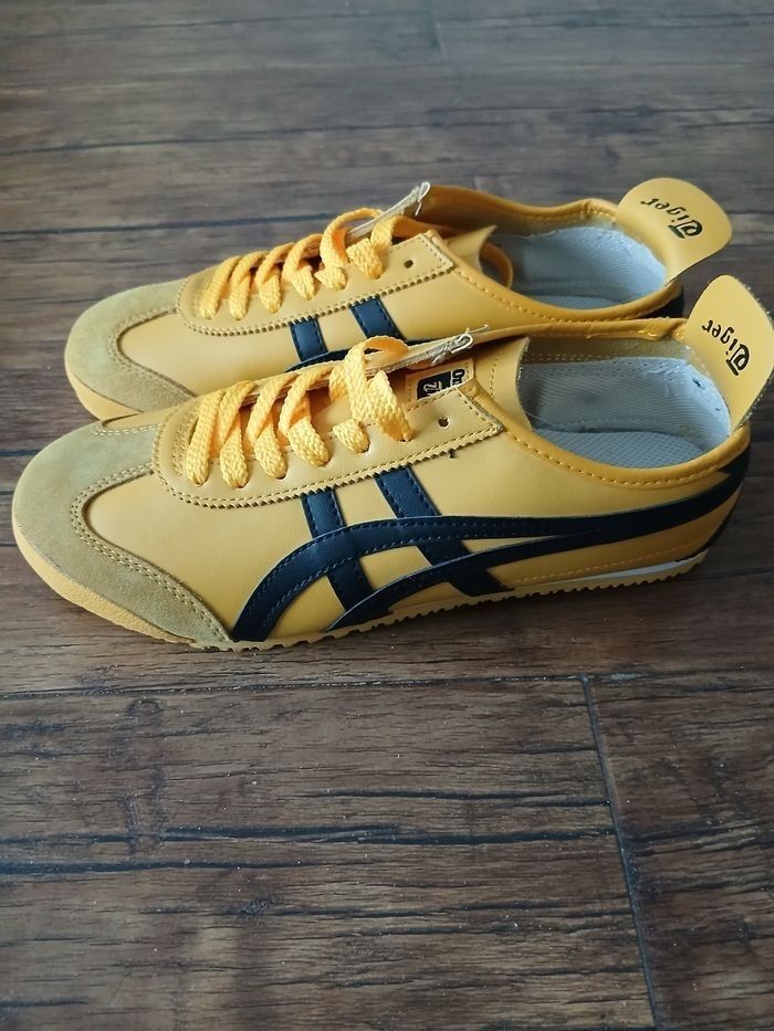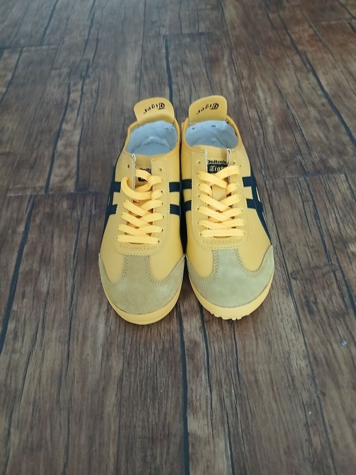 Baskets Asics couleurs jaune en cuir et daim neuf taille 41.
