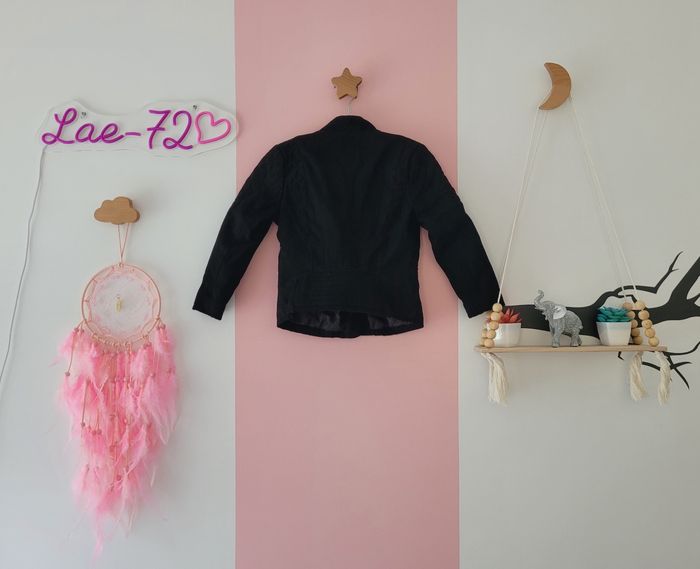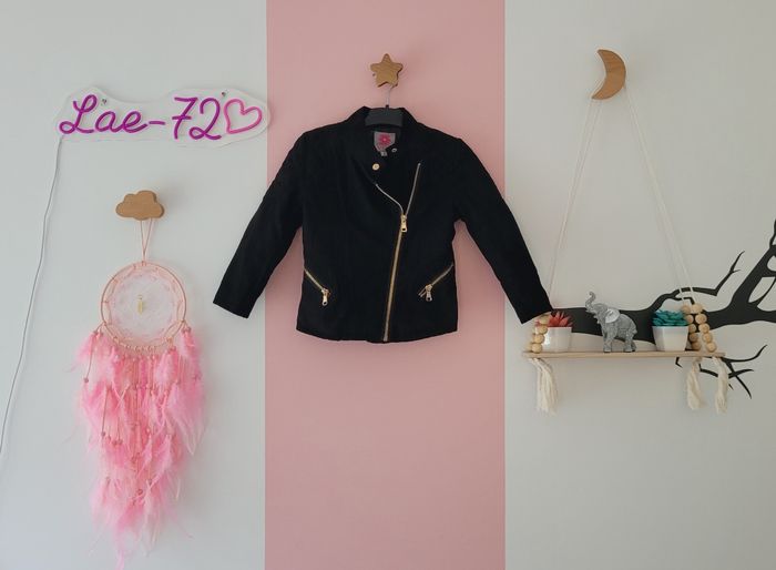 Perfecto tout doux, en genre de daim, de couleur noir avec zip doré, de la marque S.G.Z, taille 4 ans, en très bon état. Article lavé pour la vente.