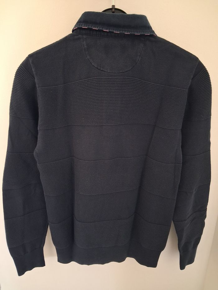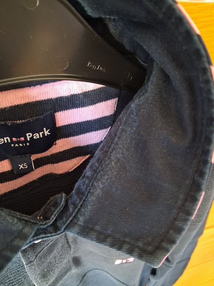 Polo manches longues taille xs. Couleur bleu marine. Usure au niveau du col qui ne se voit pas lorsque le col est rabattu po