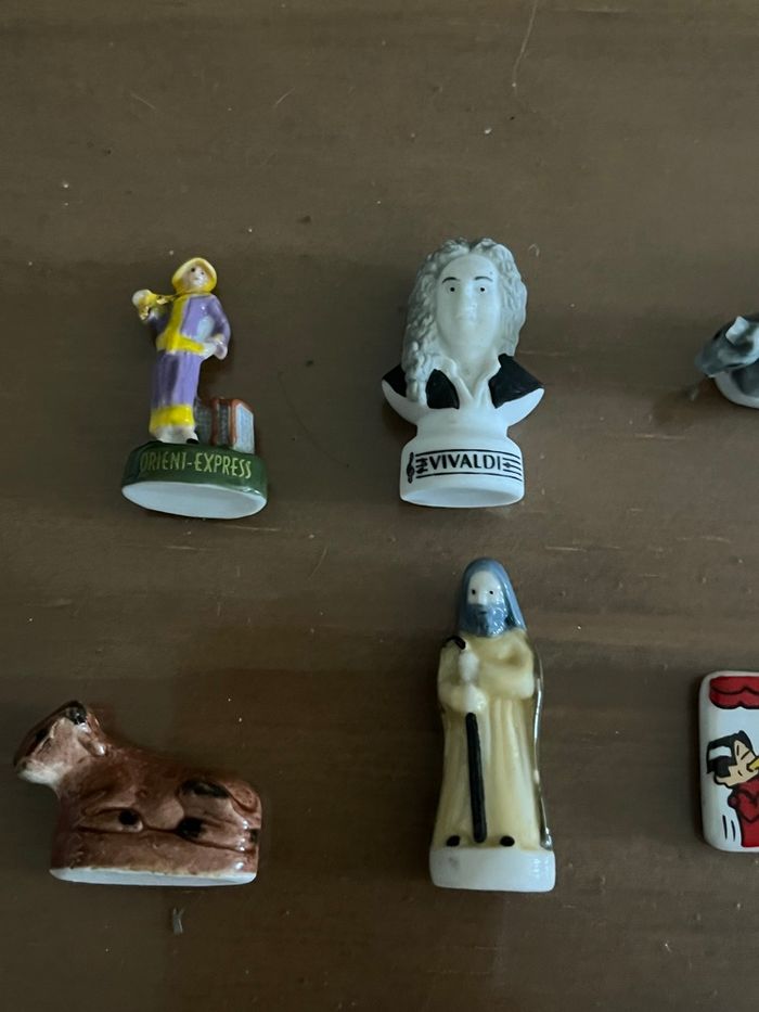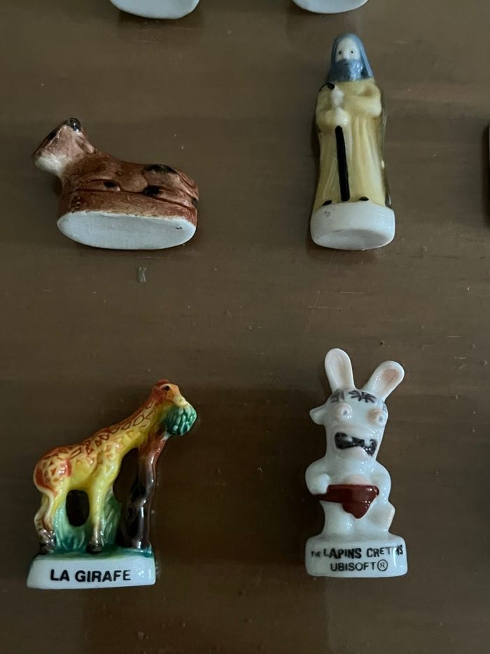 1 fève Orient-Express 1 fève Vivaldi 3 fèves Âne 1 fève vache 1 fève Roi Mage 1 fève Orchestre 1 fève Ouistiti 1 fève ballon de foot 1 fève La girafe 1 fève Les Lapins Crétins 1 fève chat marron 1 fève Piano en Valois ( Festival ) 1 fève Mia De nombreuses fèves en vente dans mon dressing, si vous êtes intéressé par plusieurs articles n’hésitez pas à me demander pour que je fasse une annonce avec les articles choisis. Nous discuterons du prix et je mettrai format petit colis afin de réduire les frais d’envoi.