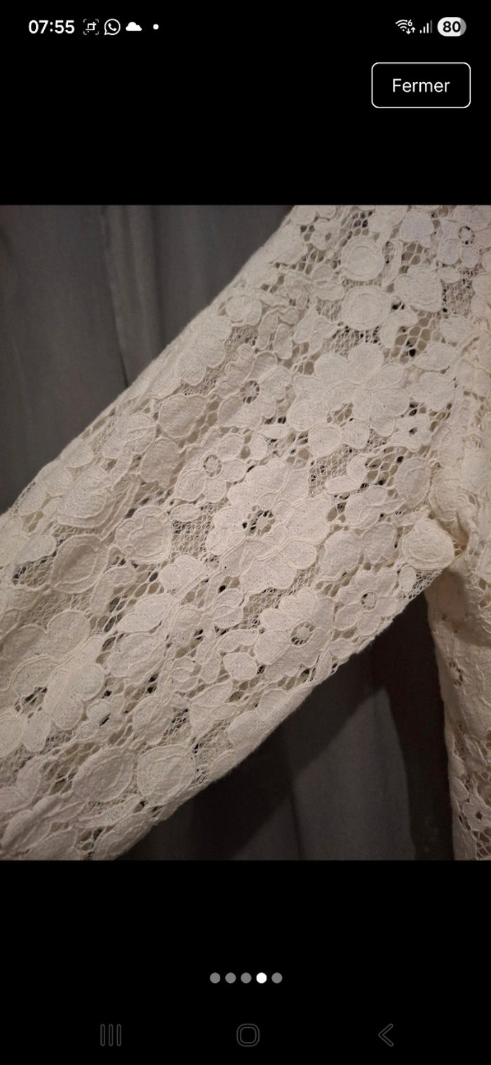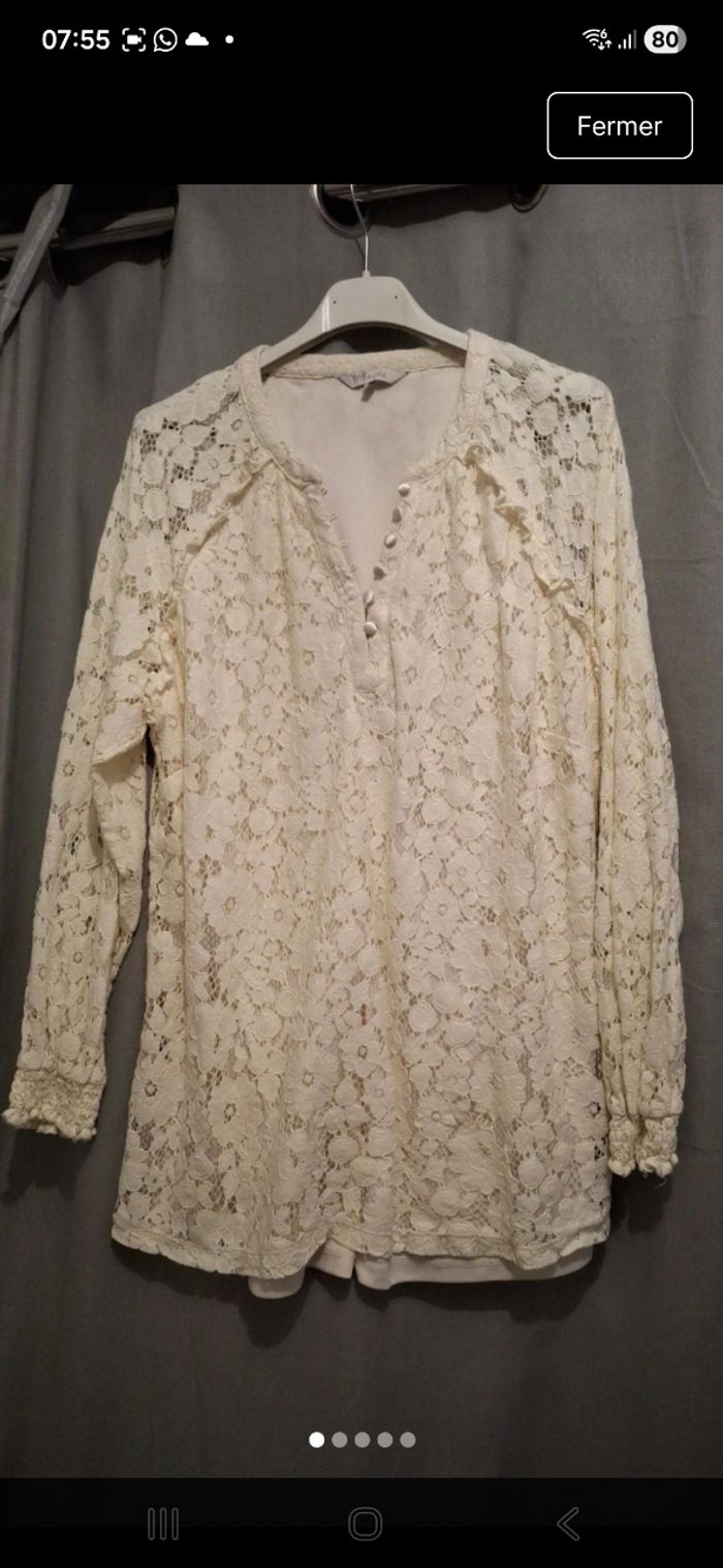 A peine porté Doubler sauf aux manches, donc on ne voit pas au travers. Aisselles 56cm Hauteur 70cm