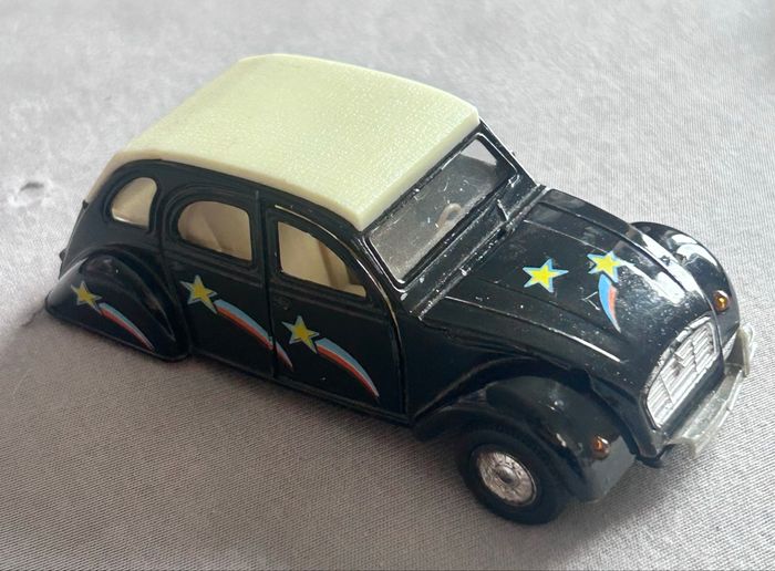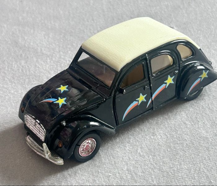 Je vends un voiture de collection de la marque « Welly »: Citroën 2cv - A l’échelle 1/36 - Numéro de série: 9046 - Matière: 100% Métal - Année: 1998 - Couleur: Noir ⚠️ Il manque la pneu arrière droit En très bon état 1€