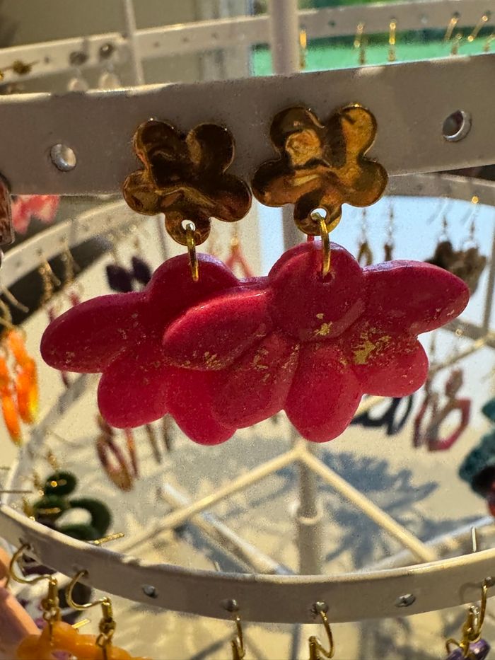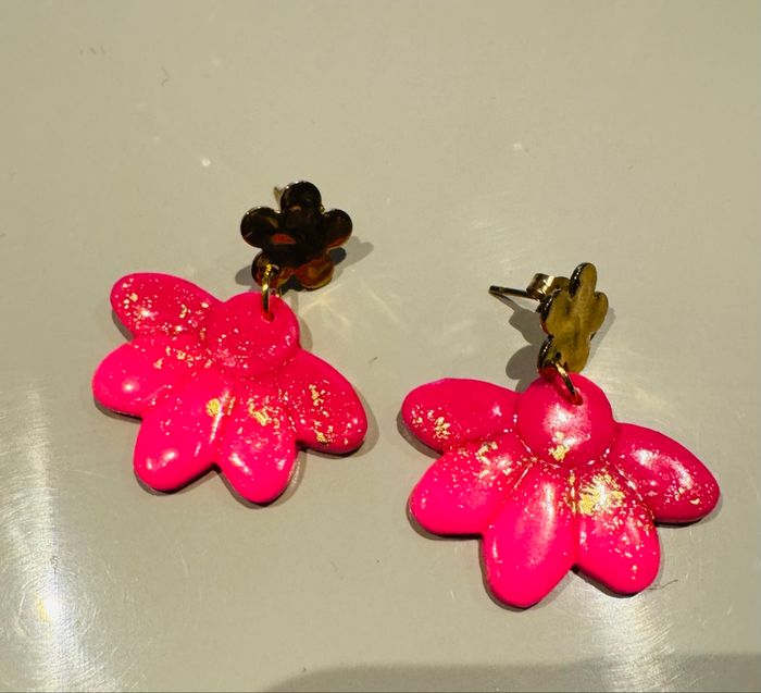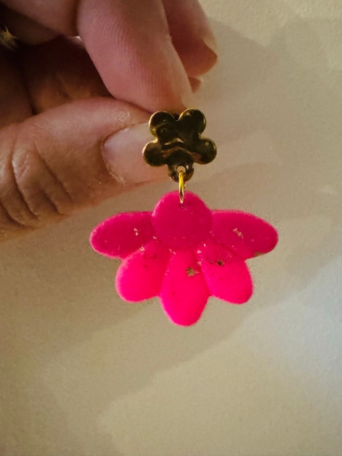 Boucles d’oreilles 2 roses et doré Très bon état Jamais portées