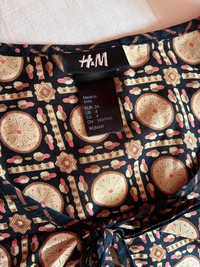 Jolie blouse H&M en pur coton Fond noir Manches 3/4 Taille comme un 36 Très bon état